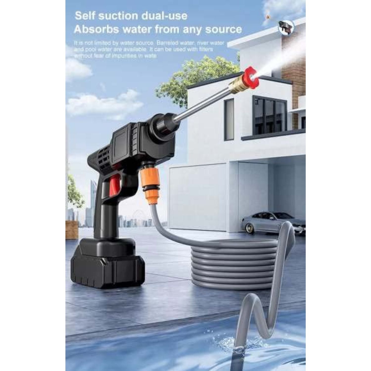 Its durable construction makes it easy to carry and operate, while the cordless design gives you total freedom—no power cords, no fixed water source required. Ideal for homeowners, travelers, campers, and outdoor enthusiasts.